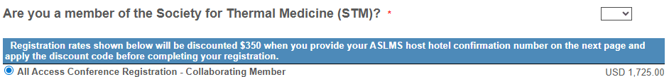 Please allow one business day to process before registering to show discounted pricing. Should you have any issues with the process please contact registration@aslms.org.
